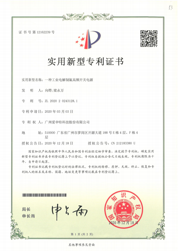 實用新型專利證書