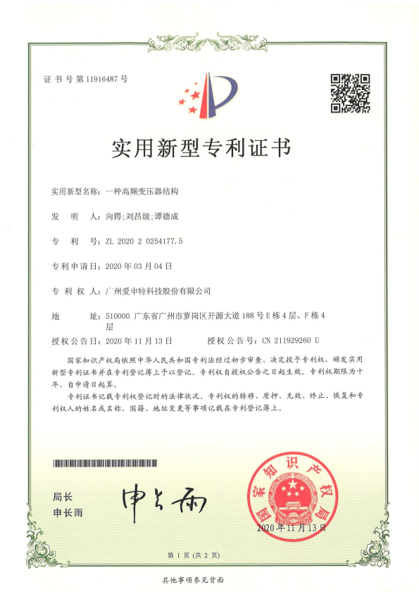 廣東省高新技術證書